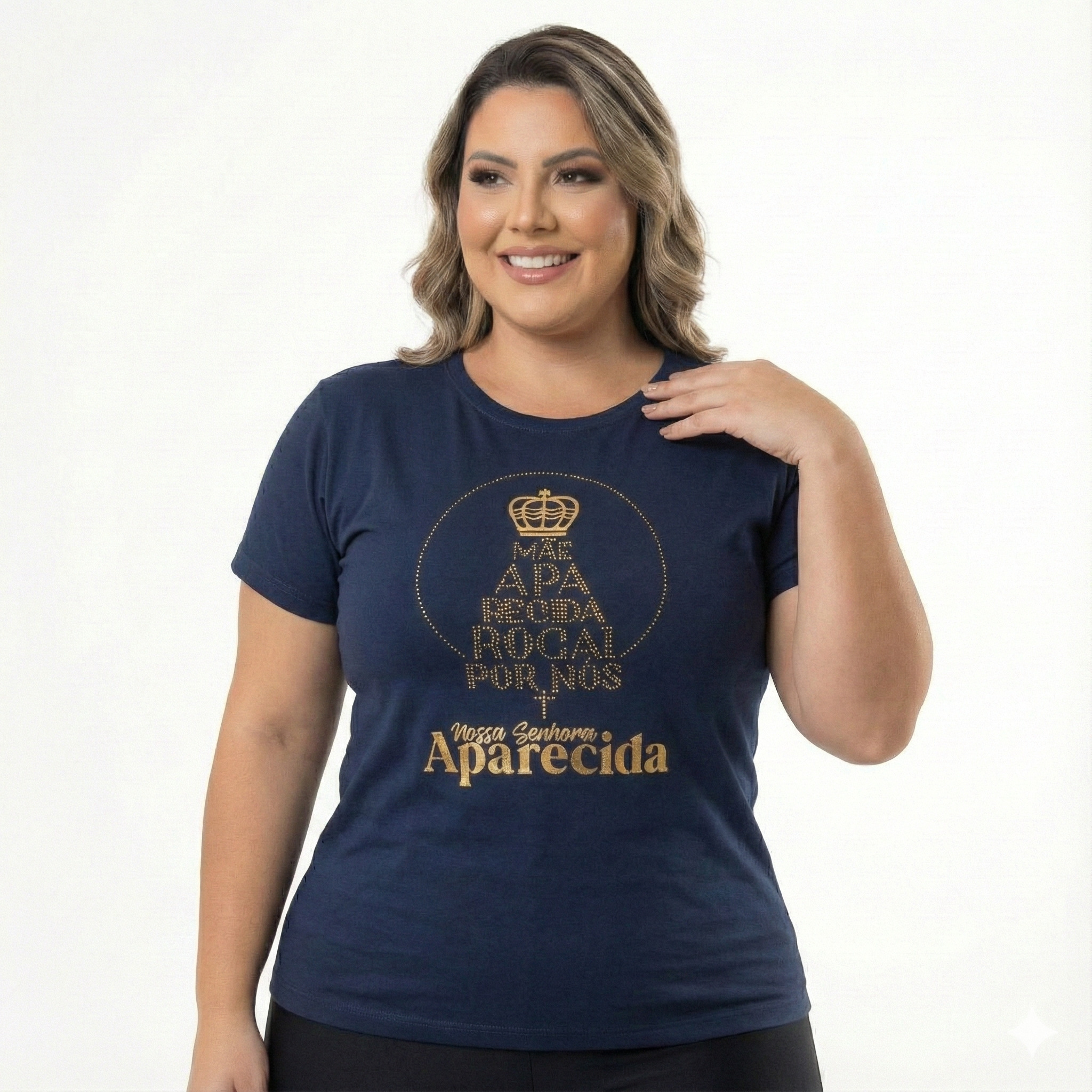 Una a devoção e o conforto absoluto em uma única peça. Esta Baby Look Plus Size de Nossa Senhora Aparecida foi desenhada especialmente para a mulher que ama a Moda Católica e devota de Nossa Senhora Aparecida e não abre mão de um caimento perfeito que respeita suas curvas. Com detalhes sofisticados em pedraria, ela é a escolha ideal para missas, grupos de oração ou para expressar sua fé no dia a dia com elegância.