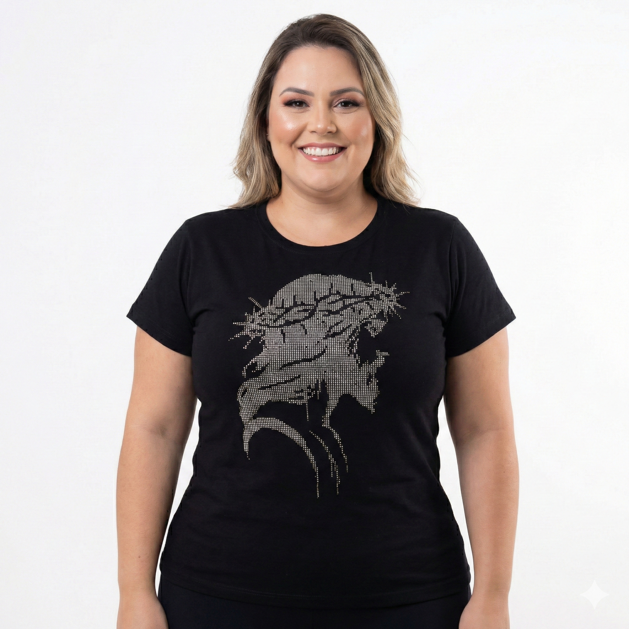 Exalte o sacrifício e a soberania de Cristo com a Camiseta Cristã Plus Size Jesus Coroa de Espinhos. Esta T-shirt Religiosa foi desenvolvida para mulheres que desejam carregar uma mensagem de entrega e redenção com elegância na Moda Cristã. Confeccionada em algodão premium, ela oferece o caimento perfeito para o corpo plus size, garantindo que você se sinta confortável e confiante enquanto testemunha sua fé em todos os momentos.
